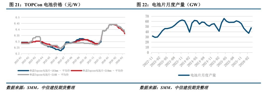 电池片方面,infolink数据显示183N/210RN/210N本周均价0.360(-7.70%)/0.360(-7.70%)/0.360(-5.30%)元/W。