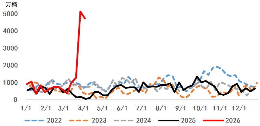 图为中东浮仓库存 [后续演绎] 本轮美以伊战事已构成史上最大规模的石油供应冲击,霍尔木兹海峡被封锁为历史上首次出现,其影响远超1973年石油禁运、1990年海湾战争等历史事件。3月内外盘原油期货主力合约涨幅超过50%,国际油价向上突破100美元/桶,创2022年俄乌冲突以来新高。考虑到美国《战争权力法》的期限约束,特朗普在3月31日的讲话中表达了会在两到三周撤军的意愿。不过,《战争权力法》对特朗普并不存在技术层面的硬约束,战事的实际走向依然存在非常大的不确定性。从中东局势的后续演绎来看,大体可以分为以下三种情形。 情形一:边打边谈,战事先升级后降温。短期仍可能出现局部军事对抗甚至升级、霍尔木兹海峡通航反复受阻等信号,但随着国际社会斡旋加码、战事相关方军事消耗加剧及经济压力显现,4月下旬美国可能撤军,战事逐步受控,霍尔木兹海峡通航逐步恢复。在这种情况下,霍尔木兹海峡或于4月下半月逐步恢复通航,原油及相关能化品种价格将冲高回落,并构建复杂的顶部结构。 情形二:战事短期降温,达成临时停火协议。在第三方调停推动下,美伊快速达成阶段性停火共识,伊朗暂缓导弹与无人机打击,霍尔木兹海峡逐步恢复通航,市场避险情绪快速回落。在该情形下,油价短期或大幅下行,前期累积的地缘风险溢价快速回吐,供需平衡表于二季度逐步修复为供应过剩,国际油价回到85~100美元/桶区间后震荡下行。需要注意的是,本次中东战事的复杂性及影响远超历史上的几次中东战争,短时间内回归和平的概率极低,短期的临时停火协议并不能解决多方矛盾,霍尔木兹海峡通行受阻带来的地缘溢价无法完全消除。 情形三:战事持续升级,烈度扩大。鉴于美国与伊朗的诉求差异较大,战事存在持续升级的可能性。在该情形下,伊朗全面封锁霍尔木兹海峡并加大对能源设施、航运线路的打击,美以扩大打击范围并强化军事部署,中东多国或卷入战事。目前,全球石油海运通道已中断超1个月。若战事持续升级,全球原油供应缺口急剧扩大,国际油价将维持上行走势,有望突破前期高点。 另外,自3月下旬起,乌克兰加大对俄罗斯能源基础设施的攻击力度,目标集中在列宁格勒地区的两个重要港口——乌斯季卢加和普里莫尔斯克。这两个港口是俄罗斯波罗的海石油出口的命脉,合计处理俄罗斯约40%的海运石油出口量。近期,俄罗斯自波罗的海出口的石油锐减,进一步推升油价。4月5日,石油输出国组织及其盟友(OPEC+)召开会议,决定自2026年5月起上调原油产量20.6万桶/日,延续逐步退出此前自愿减产的安排。相比霍尔木兹海峡通行受阻及俄罗斯石油出口量减少,OPEC+增产短期内对油价带来的抑制效果有限。 短期地缘风险仍是原油市场主要关注点,在美伊双方均表达了停火意愿但分歧巨大的情况下,以打促谈、边打边谈的概率较大,期货市场波动率将维持高位,国际油价仍面临急涨急跌的风险。市场参与者需紧盯霍尔木兹海峡通航状态、中东停火谈判进展及能源设施受损程度,警惕预期反复带来的交易风险。 责任编辑:七禾小编 |