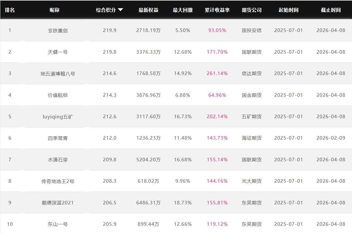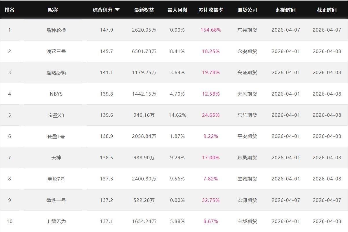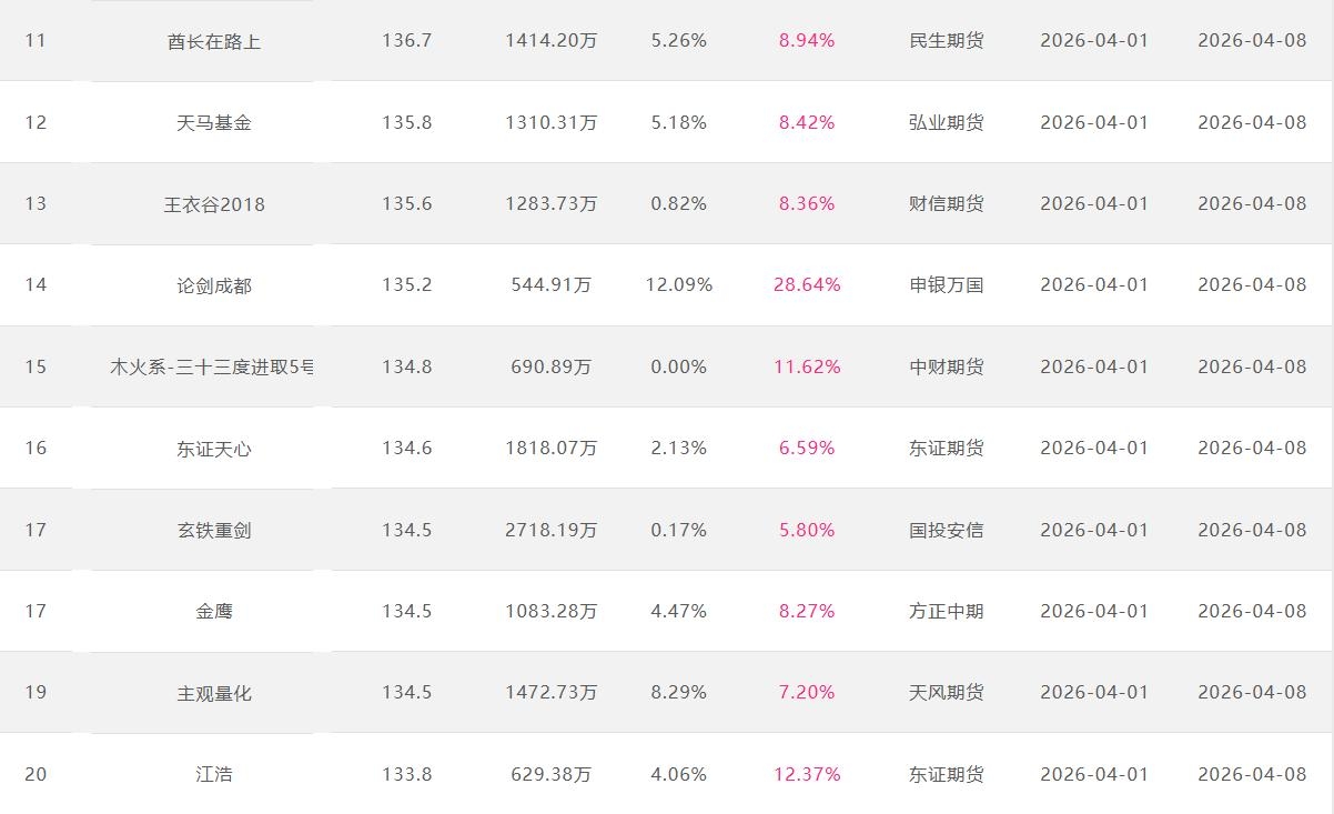 2026年4月【月度排名】(2026年4月1日-4月30日)