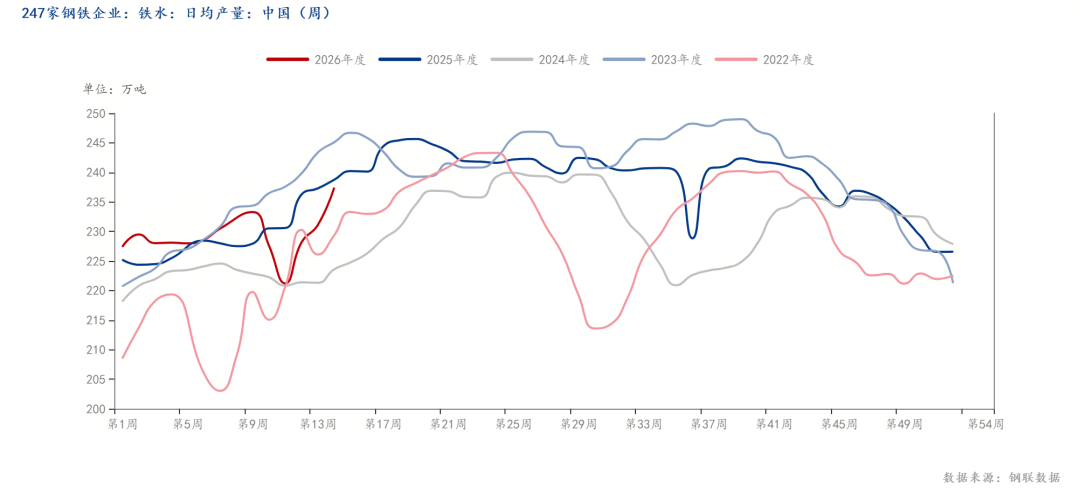 从需求端看,焦炭库存682.89万吨,减8.78万吨,焦炭可用天数12.59天,减0.16天;钢厂焦炭库存有所减少。Mysteel调研247家钢厂高炉开工率83.07%,环比上周增加2.04个百分点,同比去年减少0.06个百分点 ;高炉炼铁产能利用率88.99%,环比上周增加2.36个百分点 ,同比去年减少0.64个百分点;钢厂盈利率48.05%,环比上周增加4.76个百分点,同比去年减少7.36个百分点;日均铁水产量 237.39万吨,环比上周增加6.30万吨,同比去年减少1.34万吨。上周铁水恢复强劲,下游对于焦炭需求恢复且走强,叠加五大成材去库销量增加,去库速度加快,终端需求良好,钢厂生产对于焦炭需求较强。