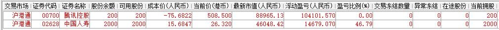 | 账户初始资金:100000.00元 2015年5月18日入金:32000.00元 2015年5月29日入金:9000.00元 2015年6月23日入金:20000.00元 2015年6月26日入金:10000.00元 2015年6月29日入金:20000.00元 2015年7月3日入金:20000.00元 2015年7月8日入金:10000.00元 2016年1月12日入金:90000.00元 2016年1月22日入金:100000.00元 2016年1月27日入金:100000.00元 2016年3月21日出金:270000.00元 2016年4月12日出金:35639.23元 2016年0月10日出金:56913.08元 2016年10月28日入金:60000.00元 2017年3月7日出金:113800.00元 参考市值:156341.55元 账户资产:156742.80元 截至今日账户A股盈亏:-41291.36元 截至今日账户港股盈亏:113713.22元 账户净值:1.755 资金股份