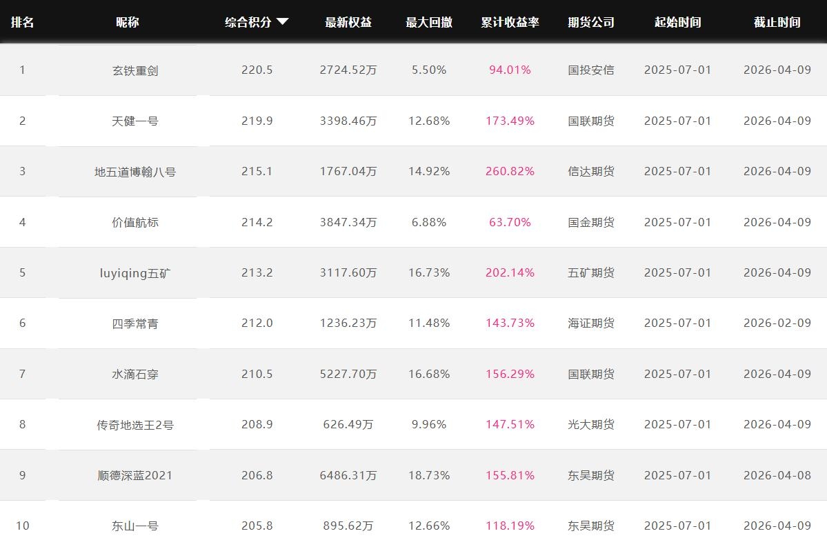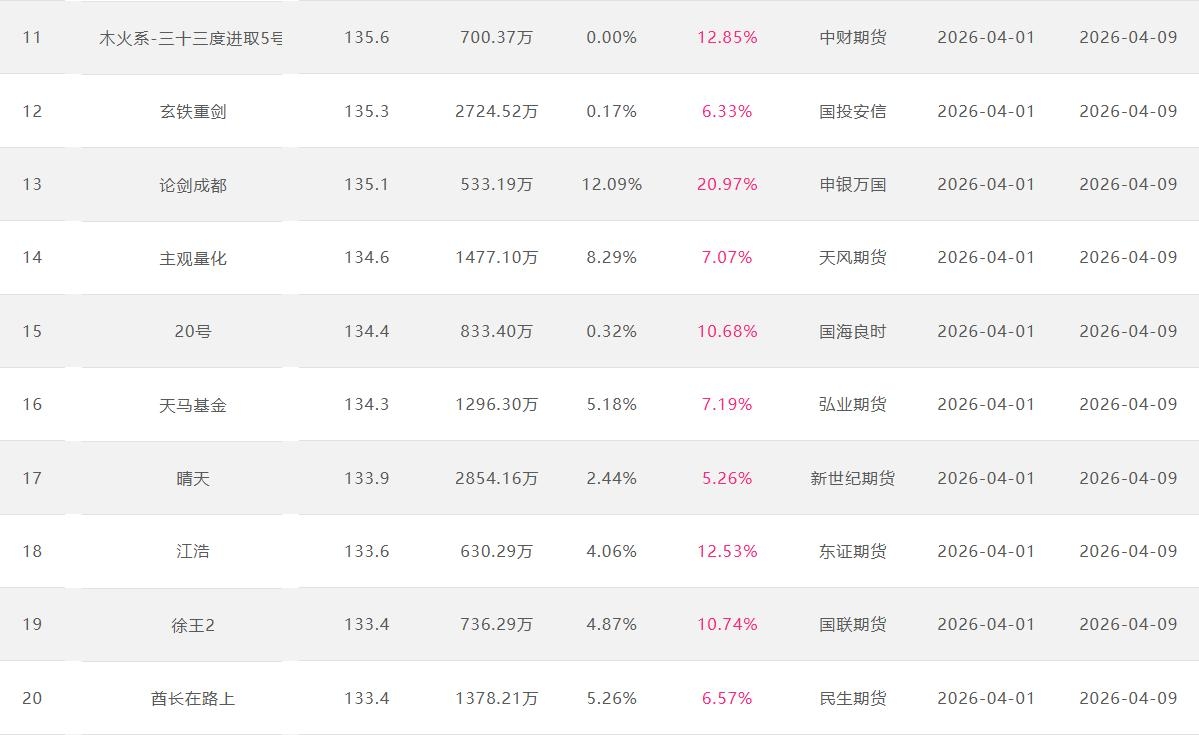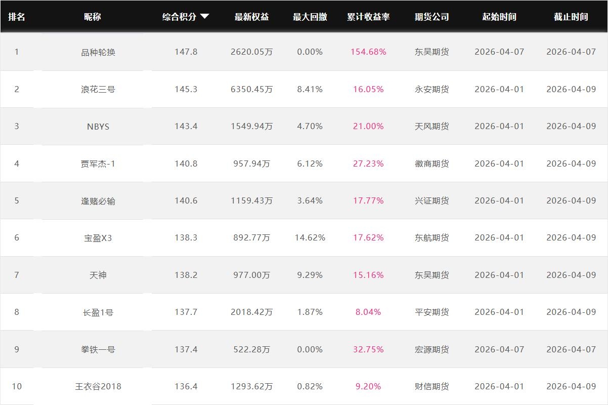 2026年4月【月度排名】(2026年4月1日-4月30日)