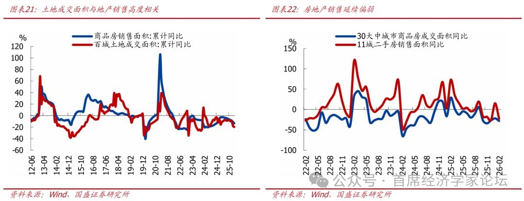 当前看,房地产市场表现仍然偏弱,土地财政承压现状可能延续。从经验规律来看,土地出让情况与房地产销售高度相关。但从近期房地产市场表现来看,地产销售仍然偏弱,1-2月30大中城商品房销售面积同比已经连续5个月维持在20%以上的较大跌幅,二手房销售面积同样偏弱,销售面积增速在1月短暂回暖后2月再度转负。居民预期方面,根据央行调查报告,2025年Q4预期房价上涨居民占比降至8.5%、为历史最低水平,指向居民房价预期仍在恶化,进一步拖累购房意愿。在此背景下,我们预计土地出让可能继续偏弱,土地财政承压现状可能延续。