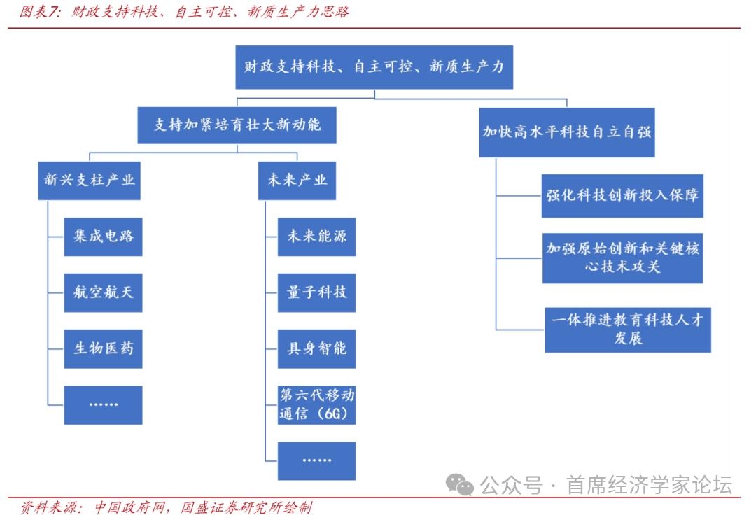 主线三:科技、自主可控与新质生产力重视程度明显提升。近年来,政策对于科技、自主可控、新质生产力的重视程度明显提升,财政预算草案中指出要“支持加紧培育壮大新动能”、“加快高水平科技自立自强”。同时,除“集成电路、航空航天、生物医药”等具体领域外,草案还明确表示要“加强原始创新和关键核心技术攻关”,中央本级安排基础研究支出增长16.3%、明显高于整体财政支出增速,指向当前财政对科技的支持,不仅重应用、也重底层研究。