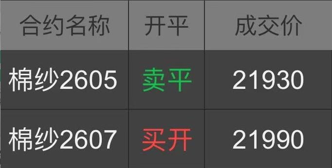 棉纱2605合约移仓换月至2607合约,新增棉花多单——交易总结(“启动点”策略的开平仓)2026.4.10