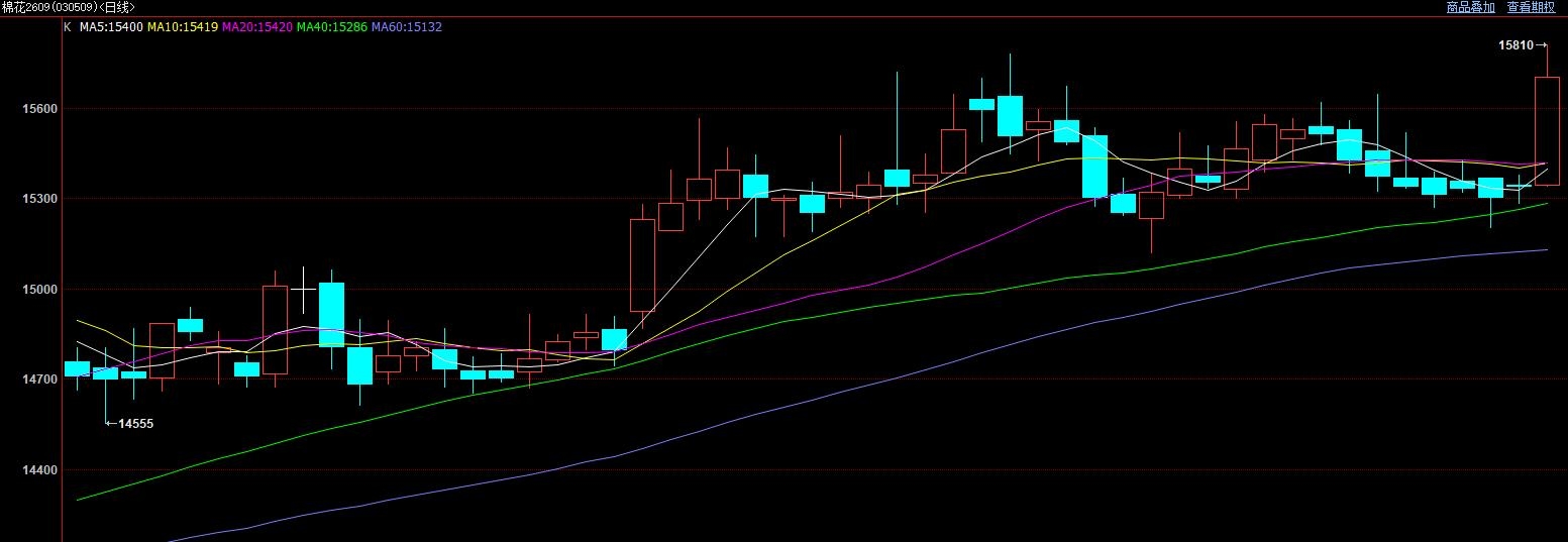 棉花:2026年4月10日,达到启动点的开仓条件,所以在14:45开多一手棉花2609合约,开仓价为15780。