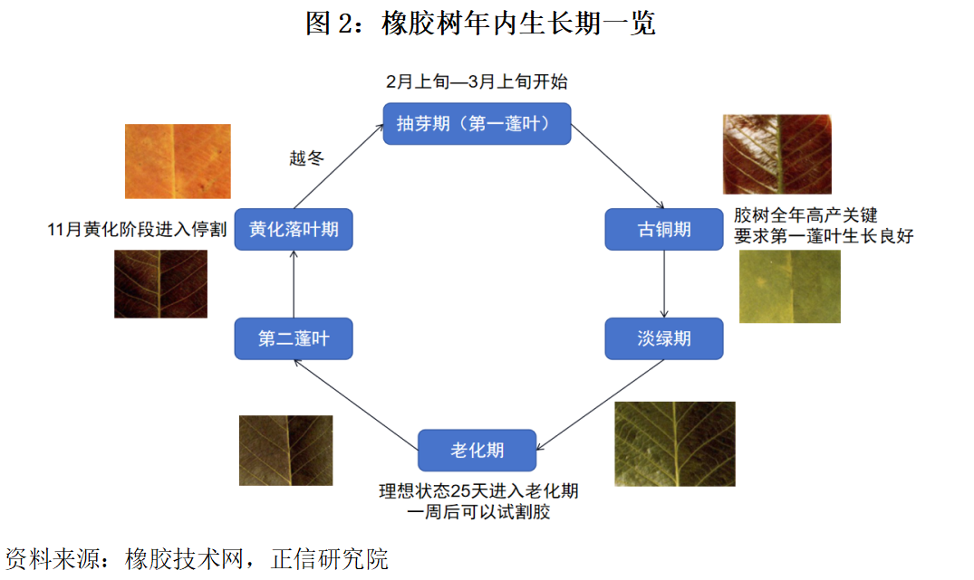 二、事件分析 此次云南勐捧农垦在国内产胶过渡期发布的休割决策,是今年出现极端天气下橡胶产业保护胶树的理性选择。由于橡胶树对气候水热条件高度敏感,目前国内产胶区的橡胶树正处于第一蓬叶的关键生长期,持续高温干旱会致使第一蓬叶生长质量下降,影响胶树后期光合作用生成生物有机质,同时也会导致橡胶树生理胁迫加剧,从树源上来看橡胶质量会有所下滑,在天气高温干旱的情况下如若强行割胶也会会导致产出的胶乳质量大幅下滑,除此之外也会损伤胶树健康,影响后续长期稳产。