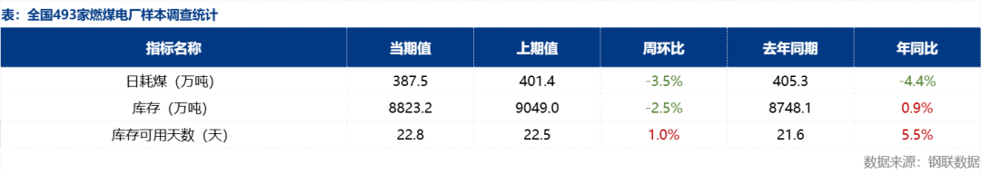 | 报告品种:焦煤 原文链接:https://mp.weixin.qq.com/s/DsRgG2RwQVNBm-p-6fVmCA?scene=1 近日,主产地区域内多数煤矿维持正常生产,煤炭整体供应平稳。假期间坑口煤价涨跌互现,整体跌多涨少,单次幅度10-30元/吨。节后首日,坑口拉运情况一般,下游用户及贸易商多持观望态度,采购积极性不高,今日煤价以稳为主。当前正值电煤消费淡季,非电终端仅维持刚需采购,预计短期内煤价将继续承压运行,后续需关注港口去库节奏及终端采购变化。 需求方面,当前天气回暖,多数电厂开启春季检修,淡季社会用电量减弱,耗煤需求支撑较弱,加上水电、太阳能、风能等新能源陆续发力对火电需求有所挤压,终端电厂日耗持续下行且整体库存相对充足,采购表现较为消极,对市场煤依旧以观望为主。非电方面,在市场信心偏弱情况下,水泥、化工等非电终端用户用煤需求不振,部分终端用户也推迟采购计划,以维持刚需库存为主。本文将对上周终端电厂样本数据进行解读,同时对于近期市场以及后续影响需求的因素进行简要分析。 据Mysteel统计,截至4月3日全国493家电厂样本日耗煤387.5万吨,环比降13.9万吨,厂内存煤总计8823.2万吨,环比降225.9万吨,可用天数22.8天,环比增0.2天。