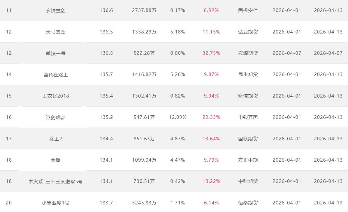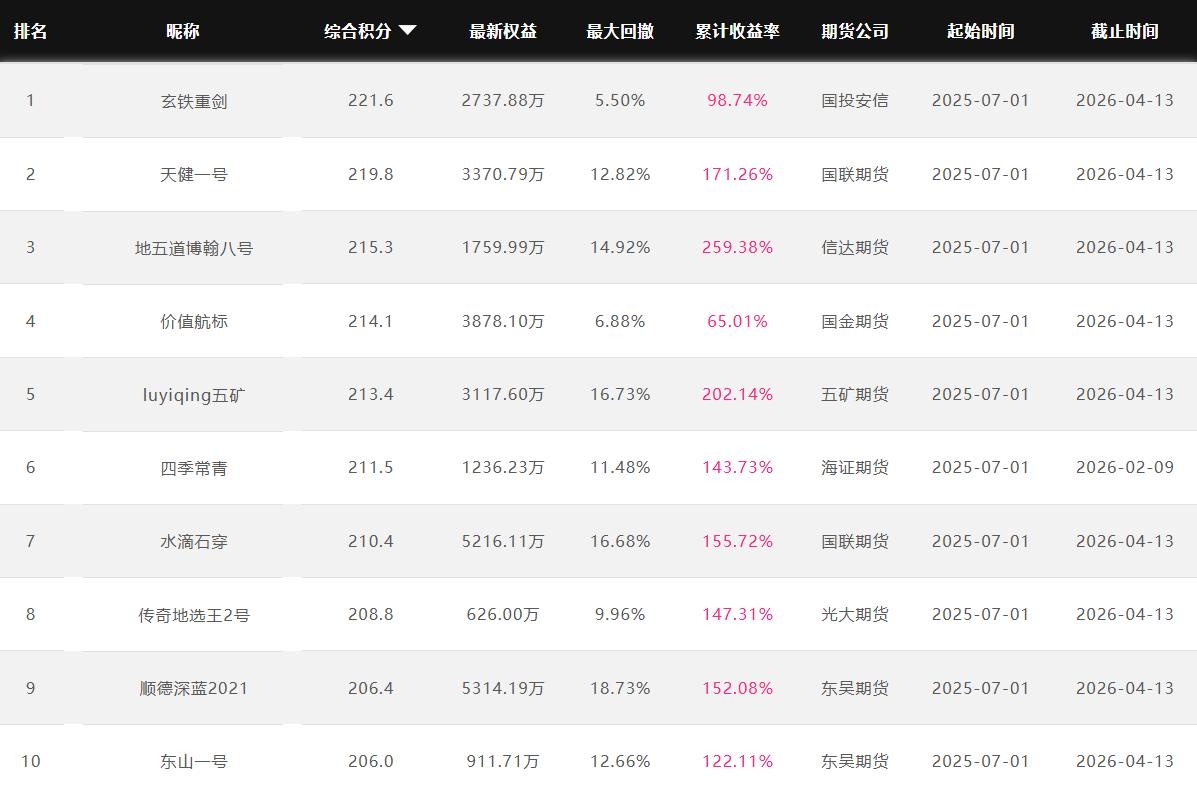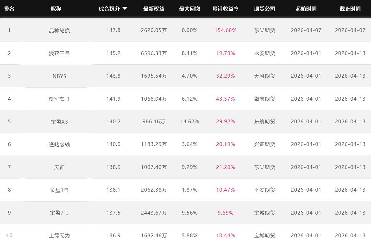 2026年4月【月度排名】(2026年4月1日-4月30日)