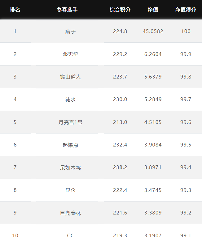 大赛净值排名前10名 2026.4.13