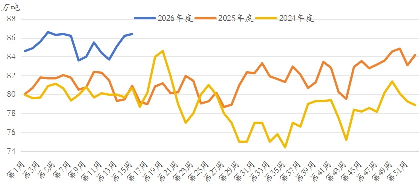 | 自3月24日创下近期新高后,烧碱2605合约持续走低,回调幅度已超20%。当前市场的核心矛盾在于“高供应、高库存”与“弱需求”之间的结构性错配。随着地缘情绪的逐步降温,市场定价逻辑回归基本面,烧碱短期价格承压明显。 供应过剩是当前烧碱基本面的核心压制因素,具体表现为“产能扩张、开工高企、产量攀升、库存累积”的递进式压力传导。产能方面,截至2025年年底,我国烧碱有效产能已逼近5100万吨。2026年规划新增产能超过250万吨,同比上涨约5%,考虑到工期延期及市场行情,预计实际落地产能增速约3%,且多数计划上半年投产的项目实际放量可能在下半年体现。开工与产量方面,当前装置开工率维持在历史偏高水平。截至4月9日当周,10万吨及以上烧碱样本企业产能利用率为85.9%,环比提升0.2个百分点,同比上涨2.1个百分点。在产能基数高企与开工率持续上行的双重推动下,周度产量已达86.4万吨,环比增长0.2%,同比增幅扩大至6.78%,创近3年新高。库存方面,受需求乏力拖累,厂库库存大幅攀升。截至4月9日当周,全国20万吨及以上固定液碱样本企业厂库库存为54.11万吨(湿吨),环比上涨2.45%,同比上涨14.06%。 烧碱的下游需求结构呈现多元化格局,广泛分布于氧化铝、印染、造纸、水处理及新能源等行业。氧化铝作为需求支柱,消费占比超30%,其市场景气周期主导了烧碱行业的需求弹性与价格方向。 国内氧化铝价格步入下行通道,对上游烧碱形成明显负反馈。氧化铝价格走弱的核心驱动在于供给端显著放量,新产能释放、进口增加及库存累积三方面因素共同压制价格。受此影响,氧化铝企业生产积极性受挫,部分装置主动降负荷,行业开工率明显低于2024年及2025年同期水平。广西新投产能预计在4月中下旬陆续释放,供需错配矛盾将进一步加剧,氧化铝对烧碱的负反馈压力或持续存在。