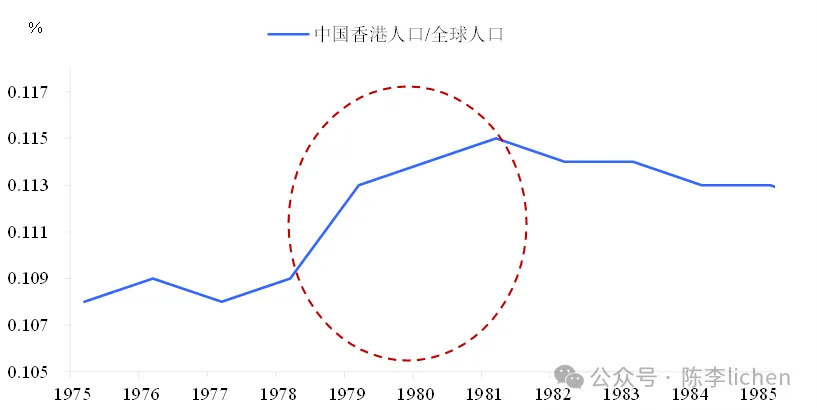 为什么香港能创造反常牛市? 这种反常的牛市并非纯粹的运气,而是由多重本土特有的宏观因素与金融错位共同驱动的: 一,人口红利的爆发性支撑。1978 年至 1980 年间,由于内地局势变化,估计有超过 40 万新移民涌入香港。这在微观上为制造业提供了充沛且廉价的劳动力,极大地抵消了能源成本上涨;在宏观上,这些新移民产生的巨大居住刚需,成为了房价上涨最坚实的底层动力。 1978-1980 年间,抵港政策取消前夕,香港人口明显上“台阶”▼