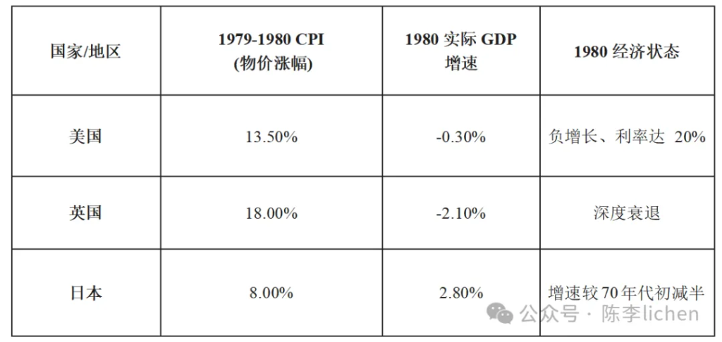 | 全球滞胀阴影下的中东动荡 1979年,全球经济步入了一个极度不确定的十字路口。受伊朗伊斯兰革命及随后两伊战争的影响,全球石油供应遭遇了剧烈冲击。当时,全球石油物理产量在短时间内下降了约4%至5%。 虽然产量缺口看似有限,但由恐慌心理引发的“囤积挤兑”远比物理短缺更致命。石油价格在短时间内从每桶13美元飙升至近40美元。在高油价的推升下,主要经济体集体陷入滞胀。 高油价导致全球主要经济体陷入“滞胀”困境▼