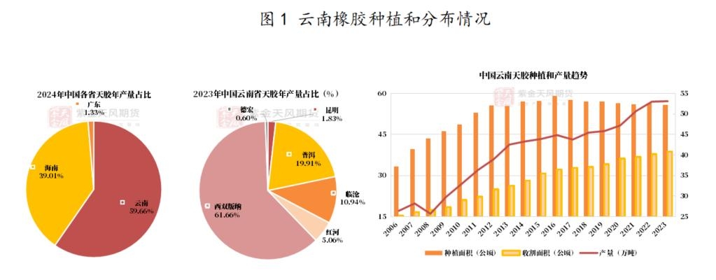 | 观点小结 上游如何看待今年云南产量与未来产能格局变化?此次调研,我们得到以下结论: 物候条件总体可控,泼水节后开割预计顺利推进。 预计2026年云南天然橡胶产量同比边际有增,但增量有限。 浓乳胶加工厂产能布局明显扩张,多数工厂产线呈倍增态势。 全乳胶厂在原料收购端毫无价格优势,叠加税改调整,全乳胶产量下降趋势明确。 老挝政府限制原料出口、要求成品出口,叠加零关税降低了成品回流的成本门槛,预计云南产区原料供应格局将持续趋紧。 1、关键结论 物候条件总体可控,泼水节后开割预计顺利推进。近期虽有阶段性干旱,但胶树树况良好,3月高温属正常范畴,往年严重干旱时开割可延迟至6月。今年3月20日左右开割后至4月8日无雨,勐捧农垦曾于4月8日发布全面停割文件,但当晚降雨半小时(虽量小但有所缓解),后续割胶陆续恢复正常,但上量有限。按产区规律:泼水节前维持高温,节后伴随正常降雨将快速上量;5月下旬进入雨季后,虽短期影响割胶,但利于后期产出;8月末雨水减少,8-11月为产量抬升阶段,其中10月达产量高峰,11月停割。尽管天气存在不确定性,目前仍预计泼水节后版纳降雨正常,后续开割顺利推进。 预计2026年云南天然橡胶产量同比边际有增,但增量有限。一是胶林面积难有增量。虽然当地砍伐管控严格,老树仅能翻新,不得改种其他作物,面积不会减少;但单位经济效益低(调研反馈一株橡胶树年产5-8公斤,按每亩33株及当前已属高价的原料价格估算,亩年产值仅约3400元),因此新种意愿极低,新种情况极少,胶林面积难有增量,目前开割面积约581万亩,未来几年预计维持此规模。二是人力成本高企制约割胶产出。割胶劳动繁重,熟练且可靠的胶工极其难找,当地普遍五五分账或按200元/天结算。高昂的人工成本直接制约实际割胶产出,进一步压制产量上限。 浓乳胶加工厂产能布局明显扩张,多数工厂产线呈倍增态势。如加工厂C从20台增至40台,加工厂D从16台增至28台;部分全乳胶厂也开始新增浓乳产线。上游普遍认为,再扩张1-3年,浓乳也将无利可图。但现实是,不做浓乳便几无利润,企业当下就无法生存。当前正值海南未大面积开割时期,正是云南浓乳抢占市场的窗口期。 全乳胶厂在原料收购端毫无价格优势,叠加税改调整,全乳胶产量下降趋势明确。一是原料竞争失势。浓乳厂凭借利润优势,在原料抢夺中敢于加价500-800元/吨,部分甚至表示即便原料价格高达18.8-19元/公斤也能接受;而当前16元/公斤的原料价格对全乳厂已属勉强,连浓乳厂自身原料都不够,全乳厂只有在9-10月产量高峰期才能拿到原料。二是全乳利润微薄。有全乳厂表示,当成品与原料价差达到1500-2000元/吨时才有生产意愿,而其中加工成本及杂费等已高达1200-1300元/吨,利润空间极其有限。三是增值税由“9进13出”转为“9进9出”,税差红利进一步压缩,全乳生产动力持续走弱。 老挝政府限制原料出口、要求成品出口,叠加零关税降低了成品回流的成本门槛,预计云南产区原料供应格局将持续趋紧。多家加工厂在老挝建厂,以半成品形式出口到国内加工,据部分加工厂反馈,老挝政府目前实施严格管控,限制原料出口、要求成品出口,旨在将产业链附加值留在老挝本国。与此同时,零关税政策非但未让低价原料流入国内,反而降低了成品回流的成本门槛。 2、调研背景 天然橡胶是云南重要的特色产业和绿色产业之一,更是云南边疆少数民族地区的支柱产业。 种植与生产情况:中国近五年天然橡胶的产量在80万吨以上,初步估计,最大产能释放为120万吨左右。云南省近五年天然橡胶的产量在50万吨以上,占全国产量的60%,初步估计,云南省最大产能释放为75万吨左右。 云南省橡胶种植地区包括西双版纳(62%)、普洱(20%)、临沧(11%)、红河(5%)。西双版纳橡胶产量占据主导地位,西双版纳包含景洪市、勐腊县、勐海县,橡胶种植区主要在景洪市和勐腊县,勐海县以种植茶叶为主。 截止到2023年年底,云南省橡胶种植面积为55.89万公顷(838万亩),实际有效开割面积38.73万公顷(581万亩)。