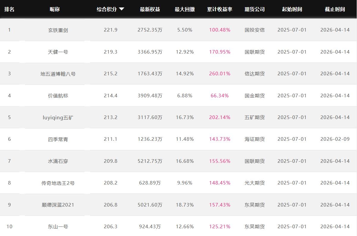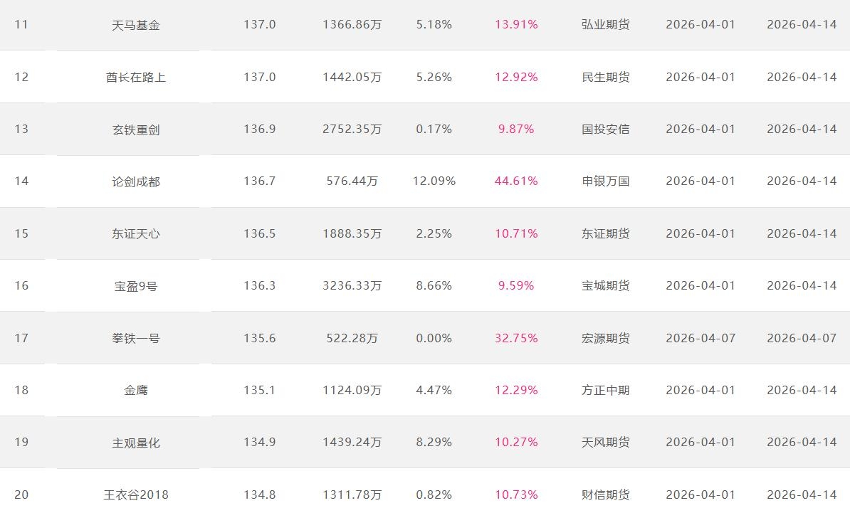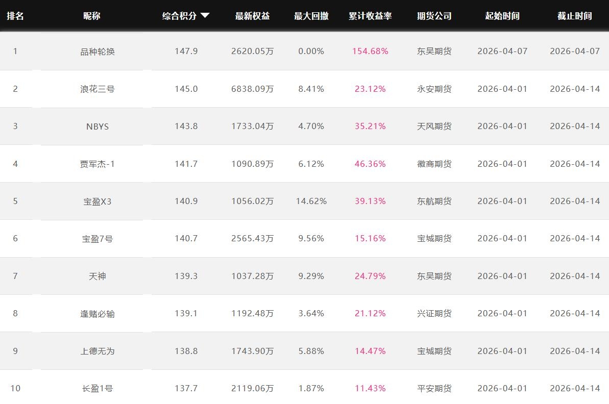 2026年4月【月度排名】(2026年4月1日-4月30日)