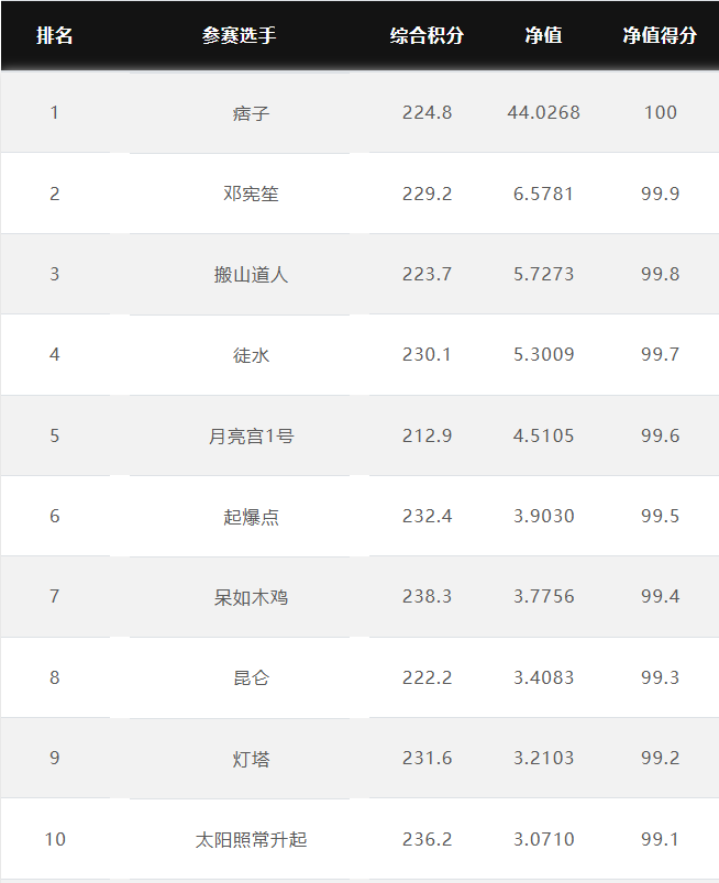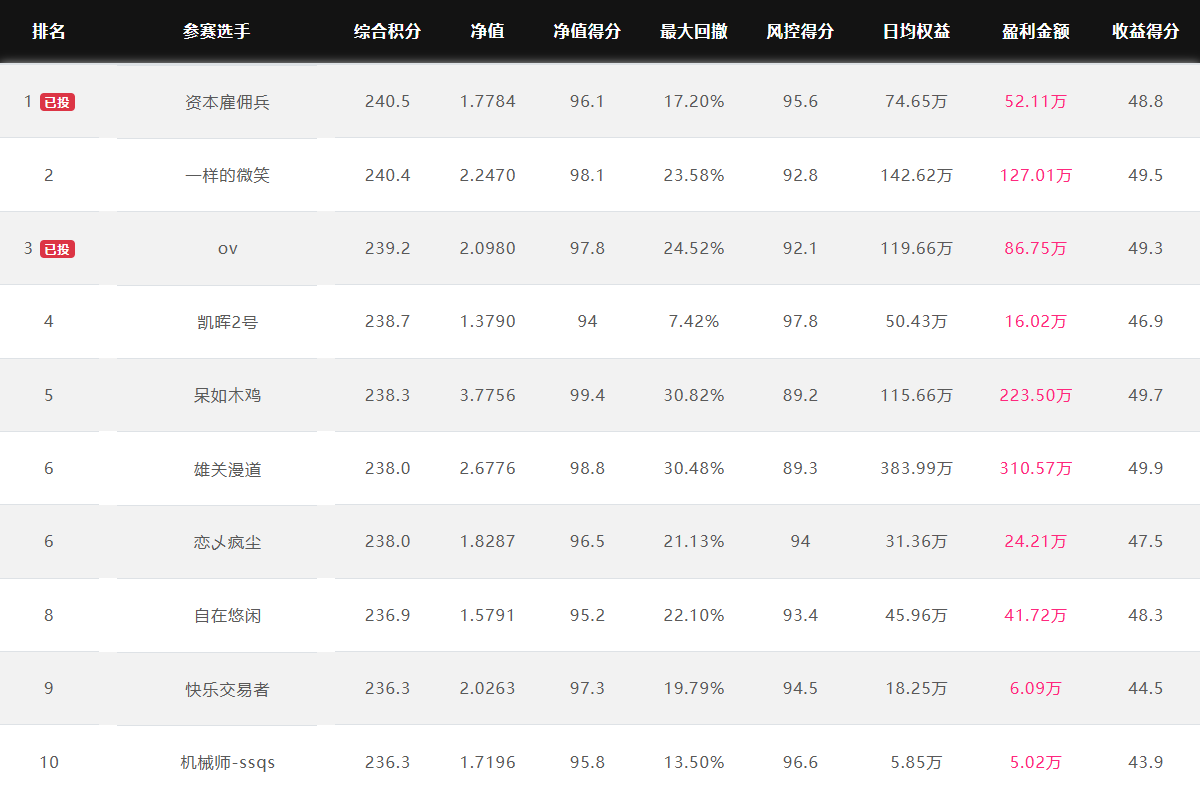 奖金上不封顶 特定期货公司参赛奖金翻倍 优秀选投 每周选优秀选手对接资金 达标必投 单笔最多给1个亿管理型资金 管理型资金盈利分成20%~70% 免费培训/研报/调研/咨询 诚邀您参赛! 为了促进国内期货市场交易人才的发展和成熟,七禾网举办本次“期货CTA英雄联盟”实盘大赛&超级服务,招募优秀的操盘手,为优秀的交易人才搭建桥梁! 第四届大赛圆满结束,第五届荣耀开启,欢迎参赛!第五届大赛已于2025年7月1日开赛,火热报名中,比赛过程中持续接受报名,大赛奖金&管理型资金&超级服务,等你来领! 2023年2月16日后,在主办方指定的几家期货公司中的某一家C公司新开户参赛,享奖金翻倍! 在主办方指定的几家期货公司中的某一家B公司新开户参赛,享奖金翻倍! 大赛中的优秀选手,只要在大赛中有3个月及以上的实盘业绩,主办方将每周发送优秀参赛者的业绩、资料给合作的数十家资方,供其考察是否投管理型资金。至2022年8月12日,资方已选出23名优秀投顾,累计投入超5.5亿元管理型资金。 优秀选投:通过主办方及资方考核后,将获得管理型资金(资金来源:七禾网自有资金(买优秀选手的基金产品)、七禾网股东、数十家合作资方) 在主办方指定的几家期货公司中的某一家B公司新开户参赛,以及2023年2月16日后,在主办方指定的几家期货公司中的某一家C公司新开户参赛,可以按照:“达标必投”进行考核(将给予单笔100万元~1亿元的管理型资金,分红比例20%~70%),详细规则请联系微信:15858201632 大赛综合排名前10名 2026.4.14