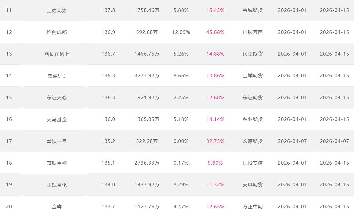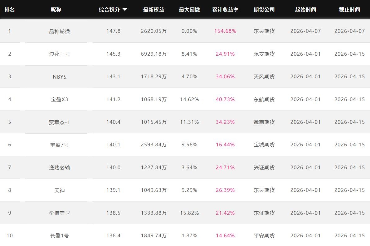 2026年4月【月度排名】(2026年4月1日-4月30日)