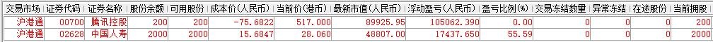 | 账户初始资金:100000.00元 2015年5月18日入金:32000.00元 2015年5月29日入金:9000.00元 2015年6月23日入金:20000.00元 2015年6月26日入金:10000.00元 2015年6月29日入金:20000.00元 2015年7月3日入金:20000.00元 2015年7月8日入金:10000.00元 2016年1月12日入金:90000.00元 2016年1月22日入金:100000.00元 2016年1月27日入金:100000.00元 2016年3月21日出金:270000.00元 2016年4月12日出金:35639.23元 2016年0月10日出金:56913.08元 2016年10月28日入金:60000.00元 2017年3月7日出金:113800.00元 参考市值:160230.95元 账户资产:160697.15元 截至今日账户A股盈亏:-41056.19元 截至今日账户港股盈亏:117432.62元 账户净值:1.799 资金股份
