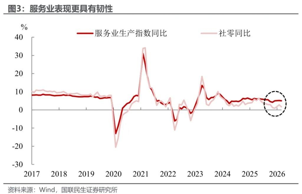 第二,投资的“止跌回稳”,背后是发展与安全并重的深层逻辑。投资端与出口链挂钩的行业投资增速明显靠前,通用设备、电子设备等领域表现尤为突出。这背后蕴含两条主线:一是“十五五”重大工程在开年加快部署落地;二是围绕统筹发展与安全、推动绿色转型的结构性布局正在稳步推进。这些举措不仅有助于增强经济韧性,同时也铸造了国际地缘冲突背景下安全与科技的“底气”。