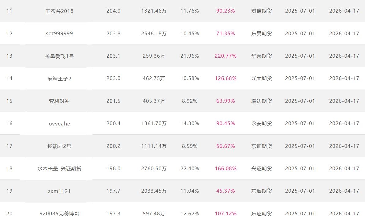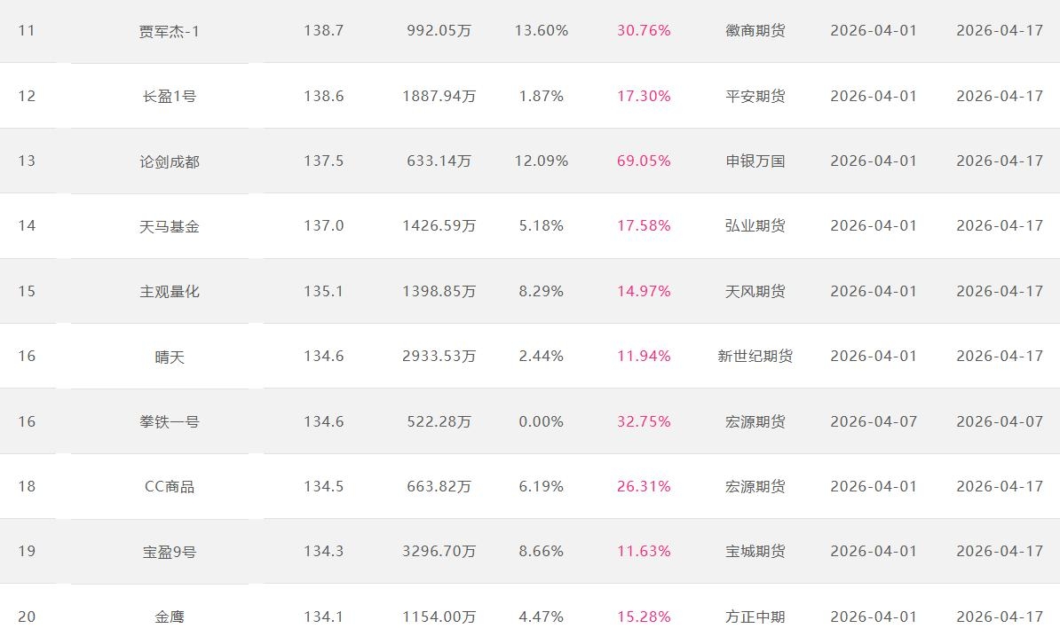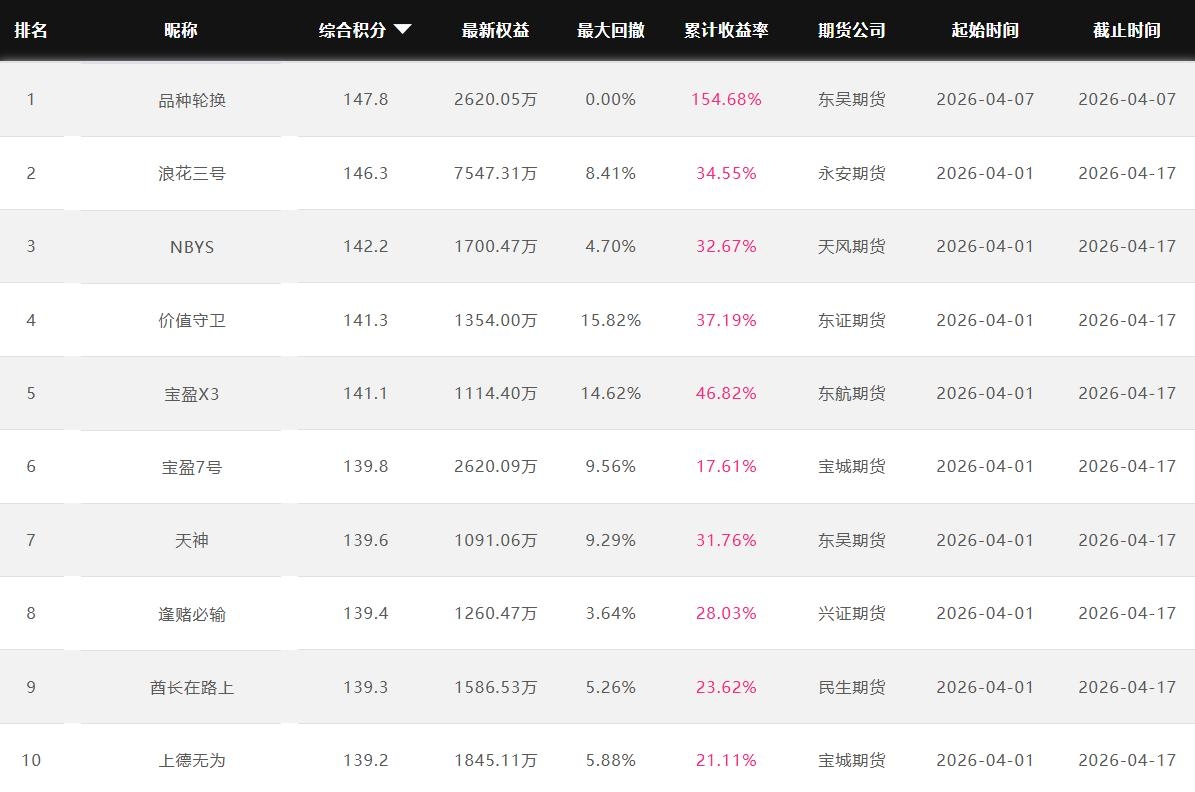 2026年4月【月度排名】(2026年4月1日-4月30日)