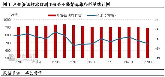 2026年1月下旬开始猪价出现下降趋势,春节假期过后持续走低,养殖亏损加剧,养殖端对下半年生猪行情信心减弱,补栏仔猪积极性下降,导致母猪场仔猪销售乏力,仔猪价格下跌,利润由盈转亏。据卓创资讯监测数据显示,截至4月10日,2025年四季度7公斤仔猪均价为305.62元/头,较2025年同期降幅37.93。因仔猪价格持续下降,7公斤仔猪销售于3月下旬进入亏损状态,截至4月10日,7公斤仔猪销售亏损为78.39元/头。 在传统的仔猪补栏旺季,仔猪销售反而进入亏损状态,仔猪销售加剧母猪场亏损,在产能持续充沛的预期下,部分母猪场有减产意愿,导致一季度能繁母猪存栏量缓慢下降。 二季度母猪存栏仍有去化空间 综上所述,在自繁自养与仔猪双亏损的影响下,2025年7月至今能繁母猪虽有去化,但考虑到母猪繁殖性能及生猪生长性能的提升,产能去化速度相对缓慢,且前期去化的产能至少在2026三季度以后才能兑现到生猪供应的减少。以生猪的繁育周期推算,二季度配种的母猪对应的断奶仔猪供应周期为9-11月,而9-11月为传统的仔猪补栏淡季,仔猪价格多处于年内低点,因此从仔猪销售端来看,二季度母猪配种减少或加速产能去化脚步。根据生猪存栏及未来生猪出栏节奏来看,二季度生猪自繁自养或仍处于亏损状态,在养殖亏损情绪的影响下,养殖端补栏意愿一般,叠加母猪缓慢去化,预计二季度母猪存栏理论上仍有去化空间。 (卓创资讯 朱泽坤) 责任编辑:七禾小编 |