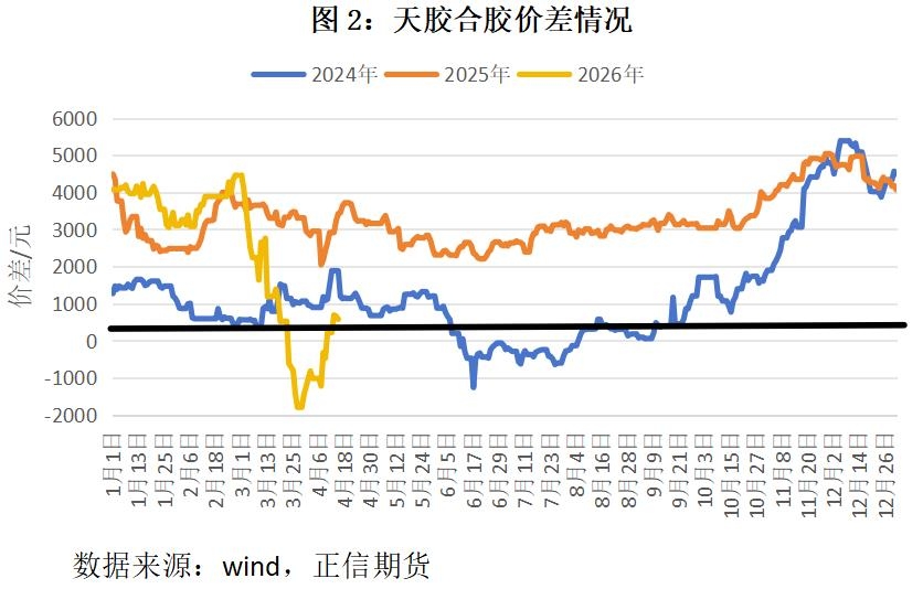 从替代逻辑上看,当两者价差低于1500元/吨时,天然橡胶性价比则会显著提升,下游轮胎生产企业会考虑主动上调天然胶掺用比例、压缩合成胶用量(当然这一举措需要时间传导),会直接形成天然橡胶需求走强、合成橡胶需求走弱的正向循环,进一步推动天胶合胶价差扩大。我们回顾历史规律,价差跌破1000元/吨后,半年内回归至1800元/吨以上的概率较高,本轮价差快速收窄原因系受短期原油价格上涨与丁二烯其他下游需求激增导致价格上涨带动,并非产业常态,随着成本端扰动逐渐消退,价差回归动力将持续显现。同时,考虑到下半年合胶因丁二烯投产引发的价格回落,也考虑到今年天胶供给拐点向下远月合约受短期情绪冲击更小,更能反映基本面震荡上涨的趋势,选择下半年主力合约或与市场合力共振以此达到预期效果。