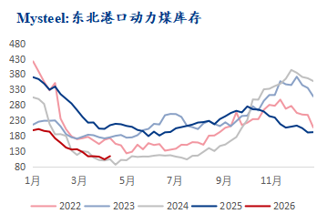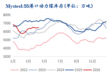 数据来源:钢联数据 综上:上周除华东及华南区域港口库存递增外其余港口库存均有减少。大秦线春季检修,北方港口调入量减少且库存持续下降,部分贸易商因现货成本与升温预期,对后市看涨情绪浓厚,报价小幅上探,低硫优质煤种报价偏高,仍有捂货现象;其余因交投僵持信心稍减,报价维稳,出货意愿增强。下游电厂机组检修增多,库存维持充裕水平,非电仅维持刚需采购,以长协履约为主,终端需求释放不佳,询货压价现象仍存,整体市场成交表现较弱。若月底补库需求仍未大量释放,煤价上涨则动力不足。预计短期内港口动力煤价格以稳为主,后市需持续关注终端采购计划及港口实际成交情况。 七禾带你去调研,最新调研活动请扫码咨询