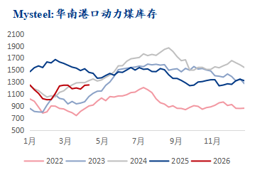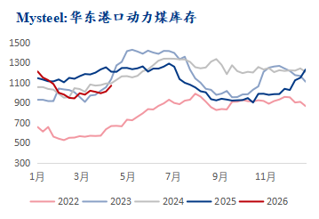数据来源:钢联数据 华东区域:上周港口库存持续递增,港口库存1069万吨,周环比增58万吨。区域内日照港煤炭库存增量明显,其余港口煤炭到港量维持正常水平,下游采购积极性一般,终端电厂补库多以刚需拉运为主。