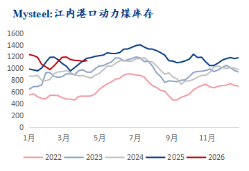数据来源:钢联数据 江内区域:上周港口库存小幅增加,港口库存1131.5万吨,周环比增10.5万吨。区域内下游需求释放速度较慢,终端采购计划暂未大量释放。部分贸易商出现挺价情绪,低价出货意愿偏低,市场煤成交不多,下游维持刚需拉运。