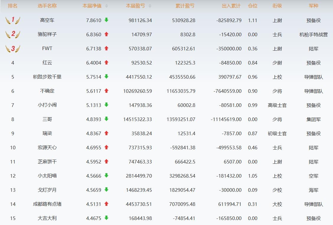 (更新日期:2026年4月20日)本届净值为第十七届开赛以来选手的单位净值