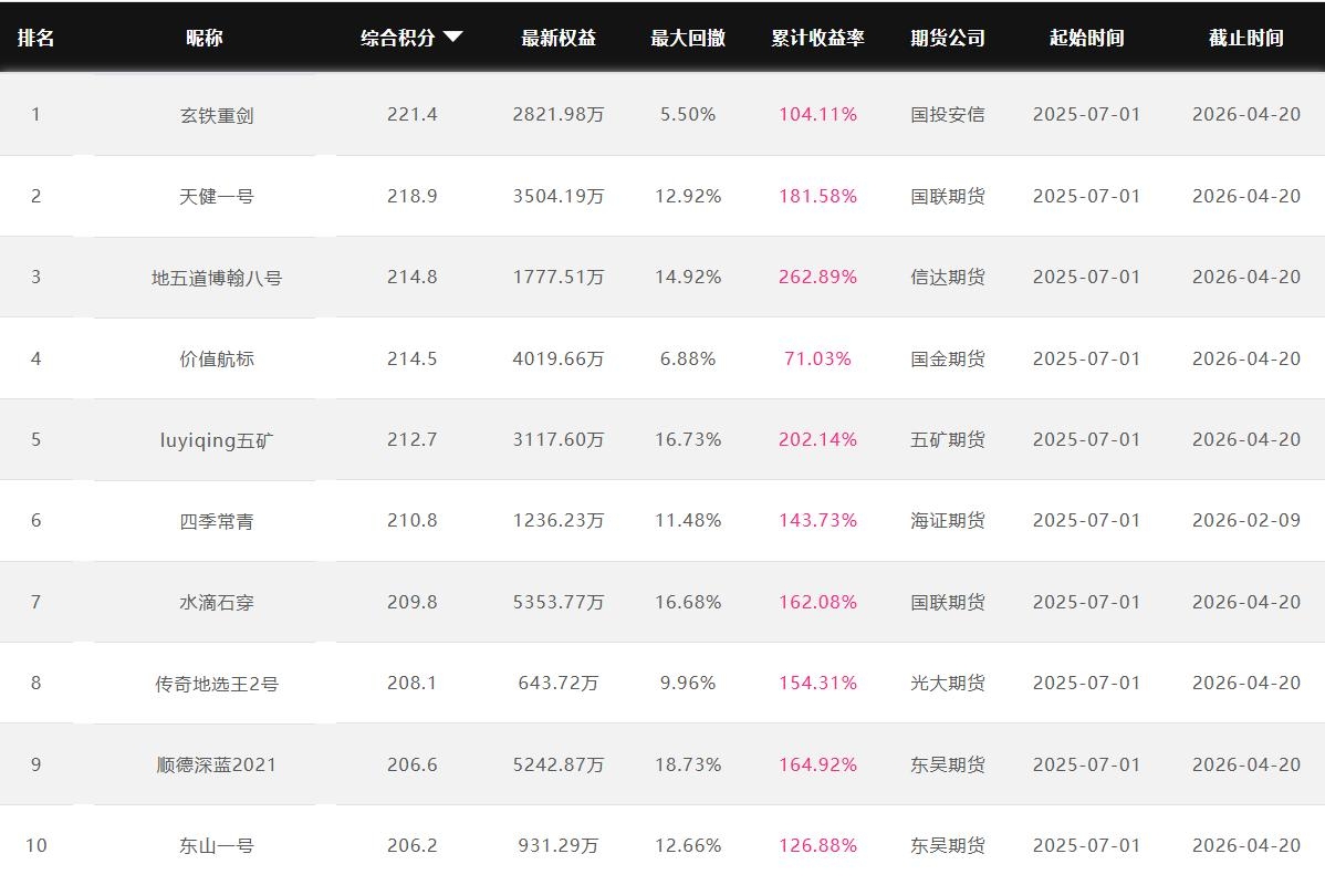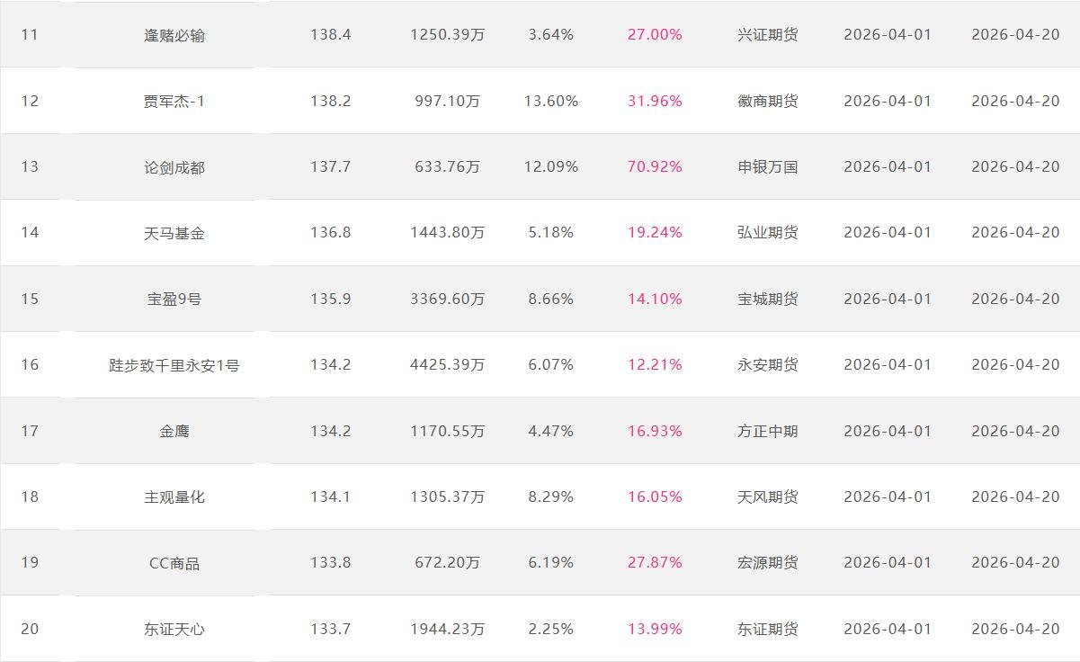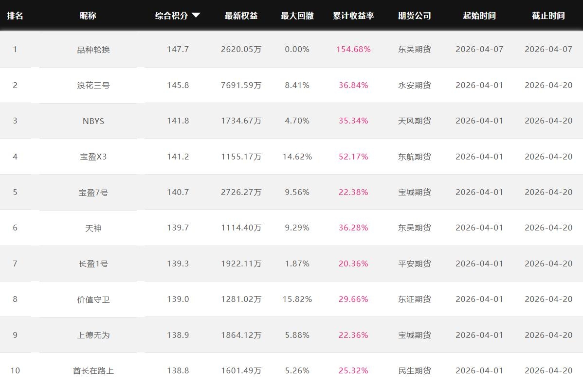 2026年4月【月度排名】(2026年4月1日-4月30日)
