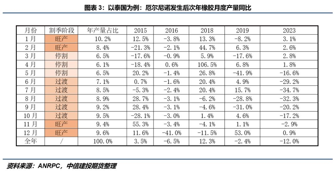 天然橡胶的产出同样高度依赖高温高湿的环境。橡胶树适宜在年降水量2000毫米以上、湿度较高的条件下产胶。厄尔尼诺给东南亚主产区(如泰国、印尼、越南)带来的持续性高温干旱,会从两方面造成冲击:一是在橡胶树停割期的生长阶段,干旱会延缓其生长,损害树势;二是在割胶期,干旱会导致胶乳合成所需水分不足,使胶乳流量锐减,长期干旱甚至会引起橡胶树落叶或枯死。历史数据表明,中等强度以上的厄尔尼诺事件常导致主产国单产下滑。