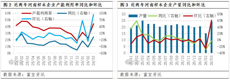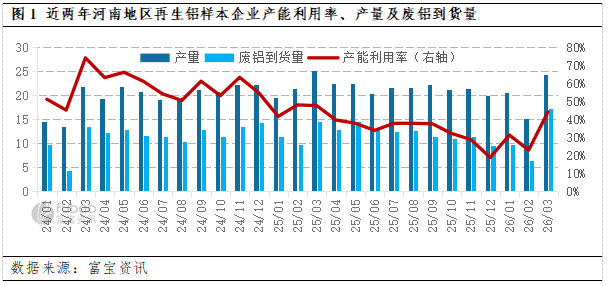 | 报告品种:铝 原文链接:https://mp.weixin.qq.com/s/Sxmi_X0XSpYVNBnfrWBDsg 据富宝调研数据显示:3月河南地区样本铝企平均产能利用率录得44.01%左右,环比增幅93.03%,同比减少7.33%;样本企业总产量约为24.36万吨,环比增加60.83%,同比下降2.64%;原料总采购量约17.11万吨,环比增加超1.5倍,同比增长17.35%。