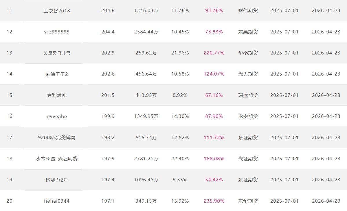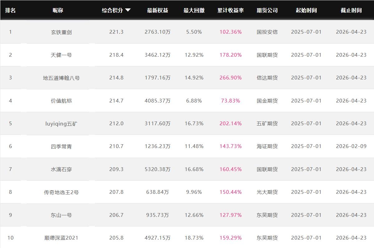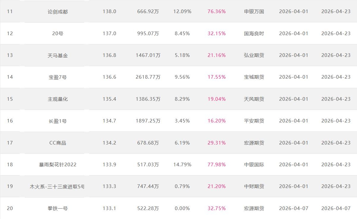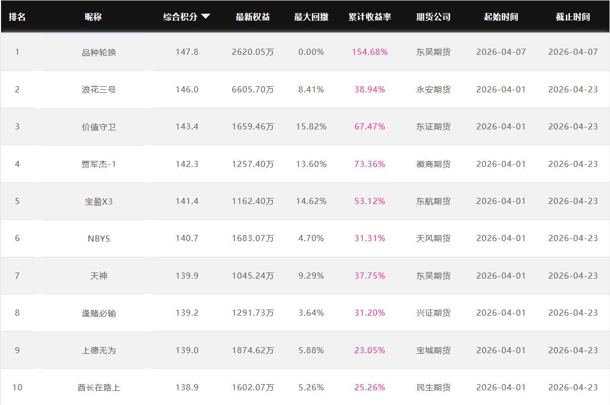 2026年4月【月度排名】(2026年4月1日-4月30日)