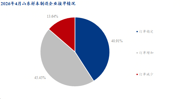 数据来源:钢联数据 4月企业订单情况整体增加 从4月初调研的企业接单情况来看,有占比45.4%的企业订单量4月份呈增加态势,其中部分能源装备制造业和中型机械制造企业订单量较3月份有比较明显的上升趋势,且出口订单增加的企业产废量增势表现较为明显,同时,占比40.9%的企业本月订单量维持相对稳定状态,另外,13.6%的企业4月份订单量处于下降状态。