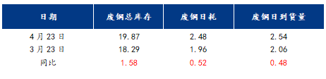 数据来源:钢联数据 4月钢厂整体废钢消耗量同步回升 3-4月份,省内主导钢厂废钢需求量呈连续小幅度增加态势,3月中旬以后,部分钢厂开工率较春节前增加,废钢整体需求量提升,同时随着市场收货量的恢复,钢厂库存和到货也呈上升趋势。截止到本周最新统计数据,省内主导钢厂日均整体废钢消耗量2.48万吨,较上月同期增加0.52万吨,增幅26.5%。按照现阶段部分钢厂的废钢使用量情况来看,4月份省内主导钢厂消耗量仍有小幅度提升空间。