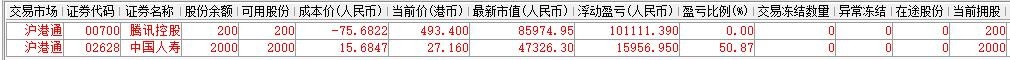 | 账户初始资金:100000.00元 2015年5月18日入金:32000.00元 2015年5月29日入金:9000.00元 2015年6月23日入金:20000.00元 2015年6月26日入金:10000.00元 2015年6月29日入金:20000.00元 2015年7月3日入金:20000.00元 2015年7月8日入金:10000.00元 2016年1月12日入金:90000.00元 2016年1月22日入金:100000.00元 2016年1月27日入金:100000.00元 2016年3月21日出金:270000.00元 2016年4月12日出金:35639.23元 2016年0月10日出金:56913.08元 2016年10月28日入金:60000.00元 2017年3月7日出金:113800.00元 参考市值:154387.25元 账户资产:154853.20元 截至今日账户A股盈亏:-41468.19元 截至今日账户港股盈亏:112000.92元 账户净值:1.733 资金股份