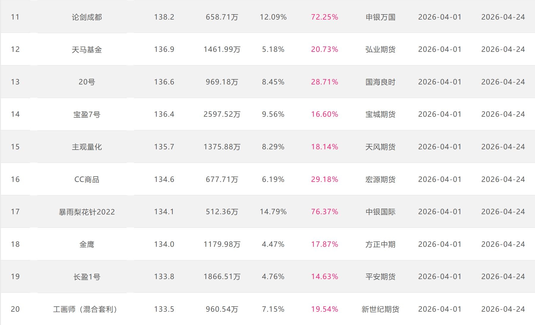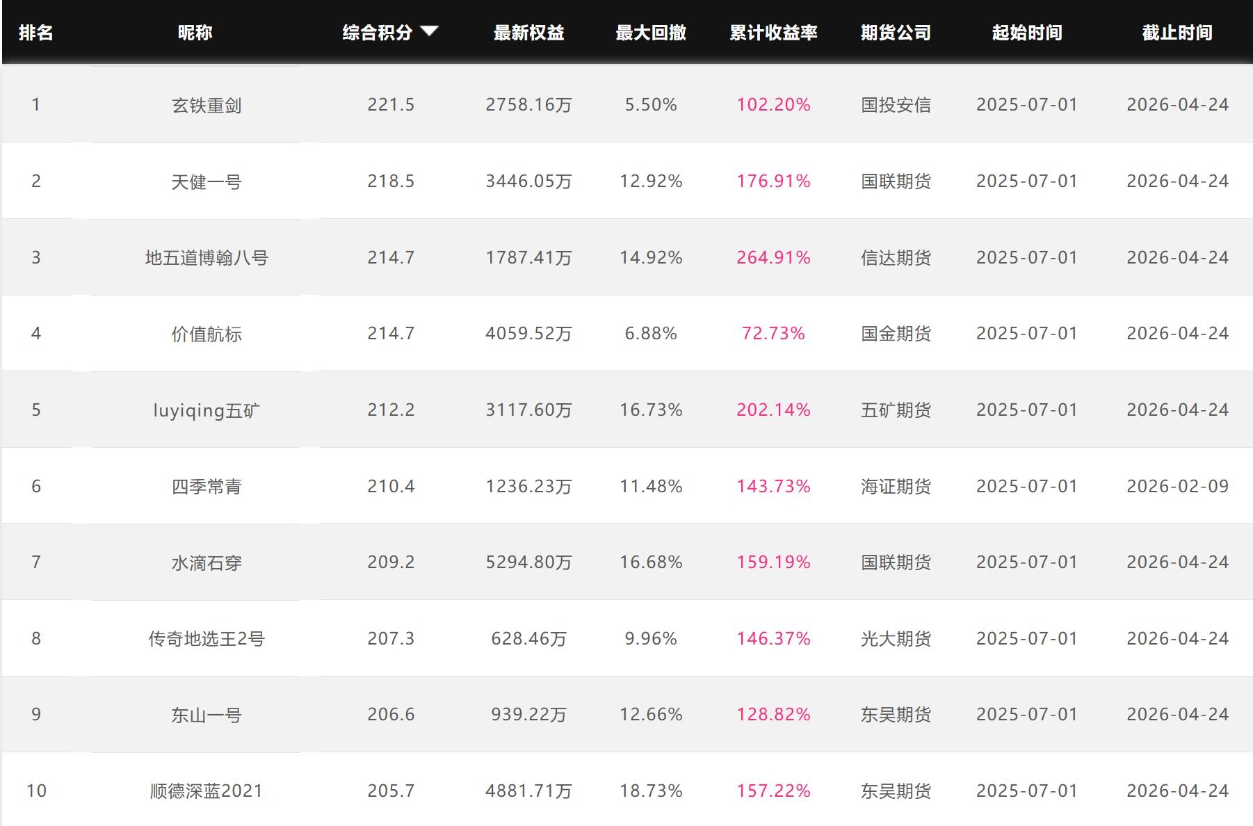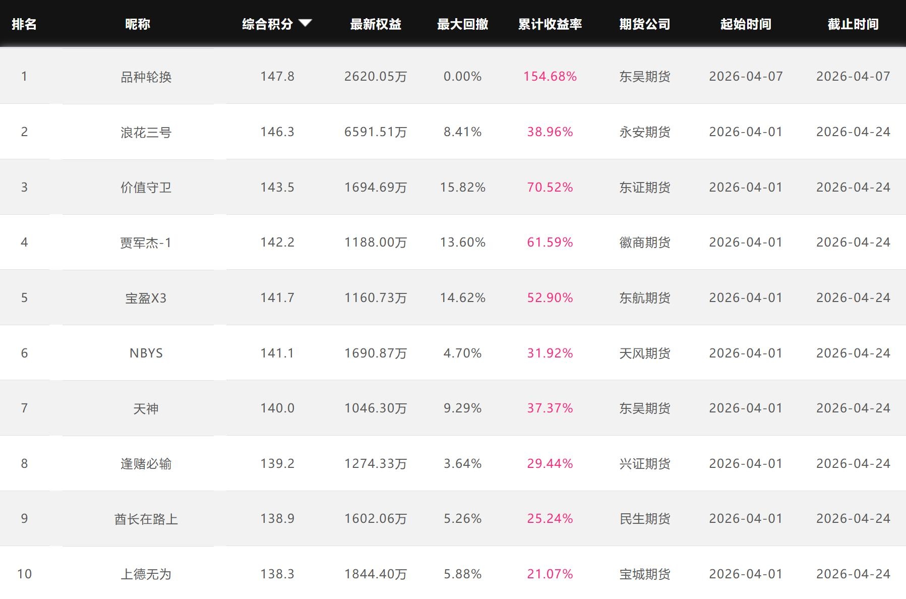 2026年4月【月度排名】(2026年4月1日-4月30日)