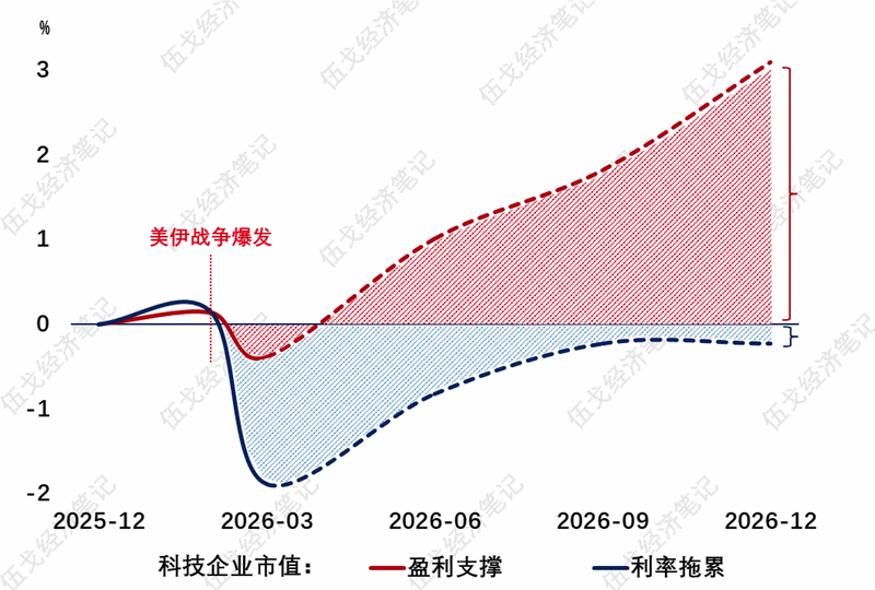 来源:WIND,iFinD,笔者测算 注:量为面积较历史同期比值;价为月环比较T月差值;含一、二手房。 三、科技在回归? 高油价之下全球利率中枢抬升,但AI的商业化进程带动科技板块盈利预期的上修,抵消了无风险利率的负向影响并推升风险偏好。 图3. 科技,无惧油价
