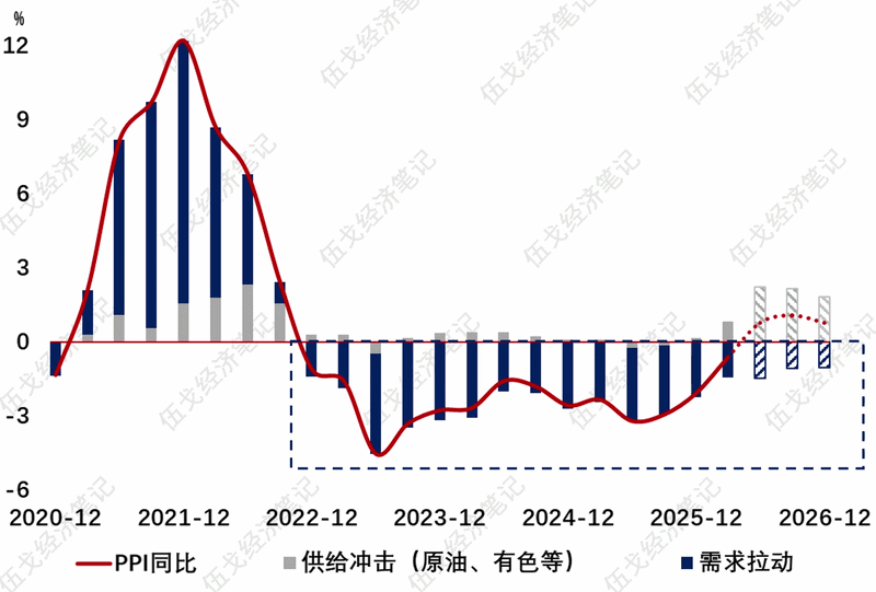 | 中东战局纷扰,但我国经济开年呈现“量价齐升”格局。实际GDP增速紧贴全年预期目标区间的上沿,PPI价格增速实现三年多来的首次转正。叠加房地产“小阳春”、科技股行情及人民币升值等,久违的基本面真的回来了吗?未来是否会持续? 一、价格在回归? 细分PPI等价格可见,其转正主要归因于原油等供给冲击,需求拉动的作用依然为负。即使部分行业出现补库需求,仍难改变企业“以销定产”的现实。 图1. 价格转正,但需求呢?