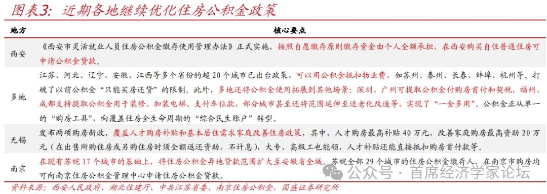 三、行业政策:多地公积金从单一购房工具转向服务住房全生命周期;推进服务业扩能提质 多地优化公积金管理 多地优化公积金管理,从单一购房工具转向服务于住房全生命周期。江苏、河北、安徽等超20地已出台政策丰富公积金使用场景,包括公积金抵扣物业费、提取公积金付购房首付和契税,公积金用于装修、加装电梯、支付车位款等;西安完善灵活就业人员公积金管理办法;南京在现有苏皖17个城市的基础上,将住房公积金异地贷款范围扩大至安徽省全域。
