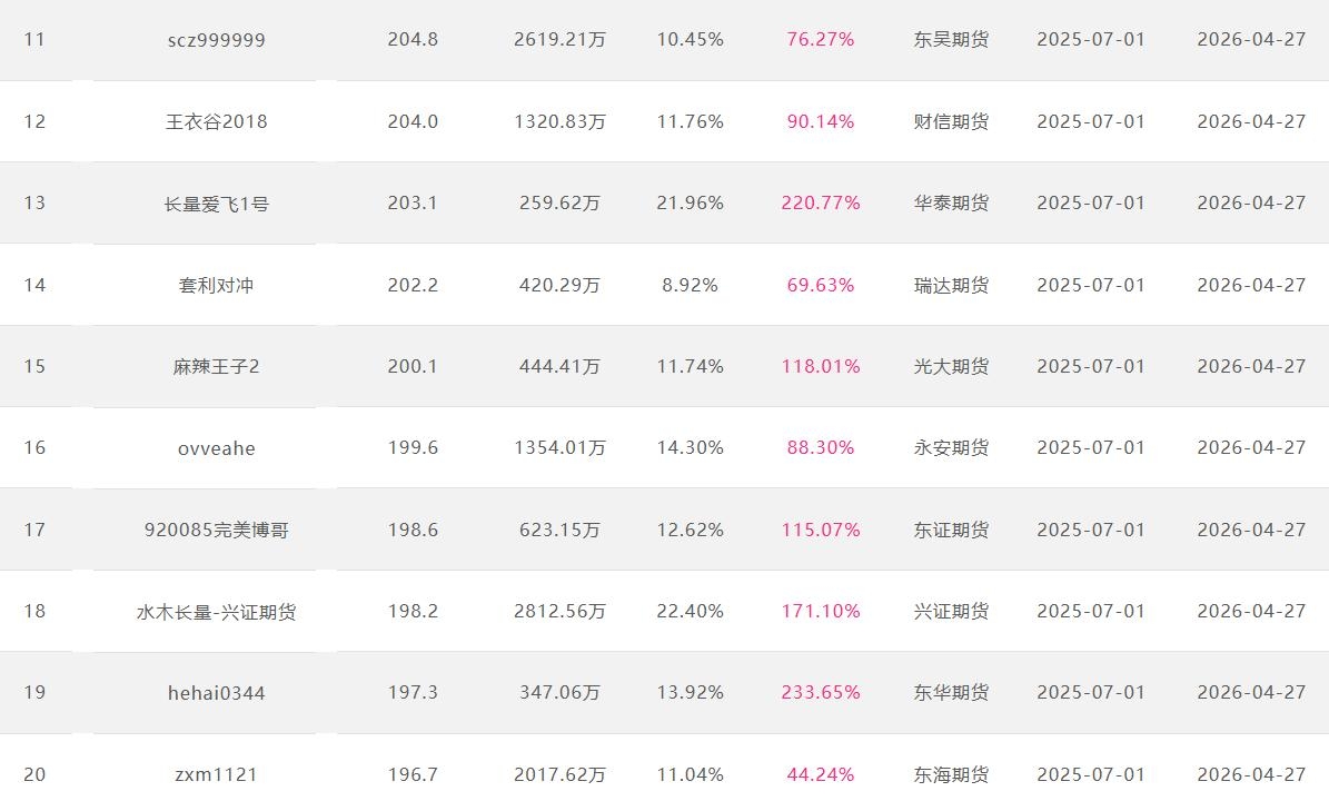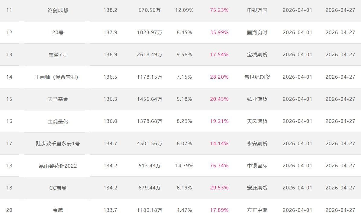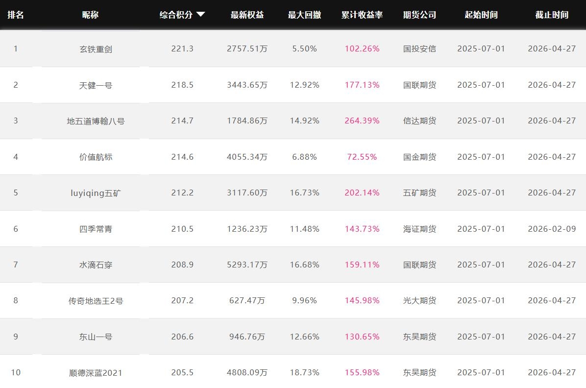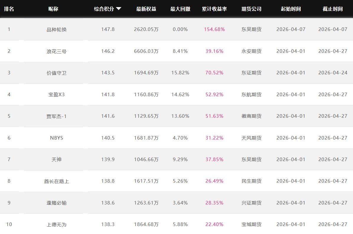 2026年4月【月度排名】(2026年4月1日-4月30日)