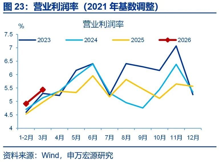 2. 常规跟踪:工企利润回升,利润率也有改善 利润:工企利润延续回升,营业利润率继续上行。3月,工业企业利润累计同比回升0.3个百分点至15.5%。分解来看,营业利润率同比较上月回升1.0个百分点至9.4%。量价方面看,工业增加值累计同比较上月回落0.6个百分点至5.7%,3月PPI累计同比较上月回升1.7个百分点至0.5%。