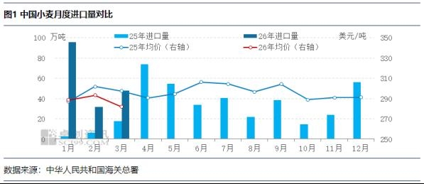 | 【导语】近日中华人民共和国海关总署公布了2026年3月份的小麦进出口数据,据数据显示,3月小麦进口量同比、环比均增,进口均价同比、环比均降。3月出现少量出口。 国内供需存缺口叠加采购船期年后到港,助力3月进口量增长 进口量方面,3月进口量47.80万吨,环比增幅51.24%,同比增幅168.25%。截至3月底,2026年中国累计进口小麦总量175.31万吨,同比增加148.23万吨,增幅547.46%。 3月份国内优质小麦市场余粮继续消耗,叠加面粉企业开工负荷阶段性回升,制粉需求增加,部分厂家灵活提价补库,价格稳中有升,部分企业进口积极性提升,加上国内前期加大对澳大利亚、阿根廷小麦的采购力度,部分按计划于春节后到港,对3月进口量环比增长带来直接影响。
