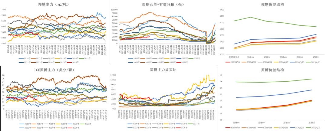 数据来源:Wind 沐甜科技 中国海关 大地期货研究院 等待政策落地 近期盘面再次炒作进口政策题材,不管是延期发放还是大幅减量,仍然没有准确预期,导致盘面波动不确定性变大。 2026年3月我国食糖进口10万吨,同比+3万吨;25/26榨季累计进口239万吨,同比+78万吨。 2026年3月我国总计进口糖浆预拌粉12.3万吨,同比-1万吨,折糖约9.2万吨; 25/26榨季累计进口56万吨,同比-32万吨;累计净进口17万吨,同比-34万吨。 商务部数据显示3月配额外巴西原糖预报到港量为0。