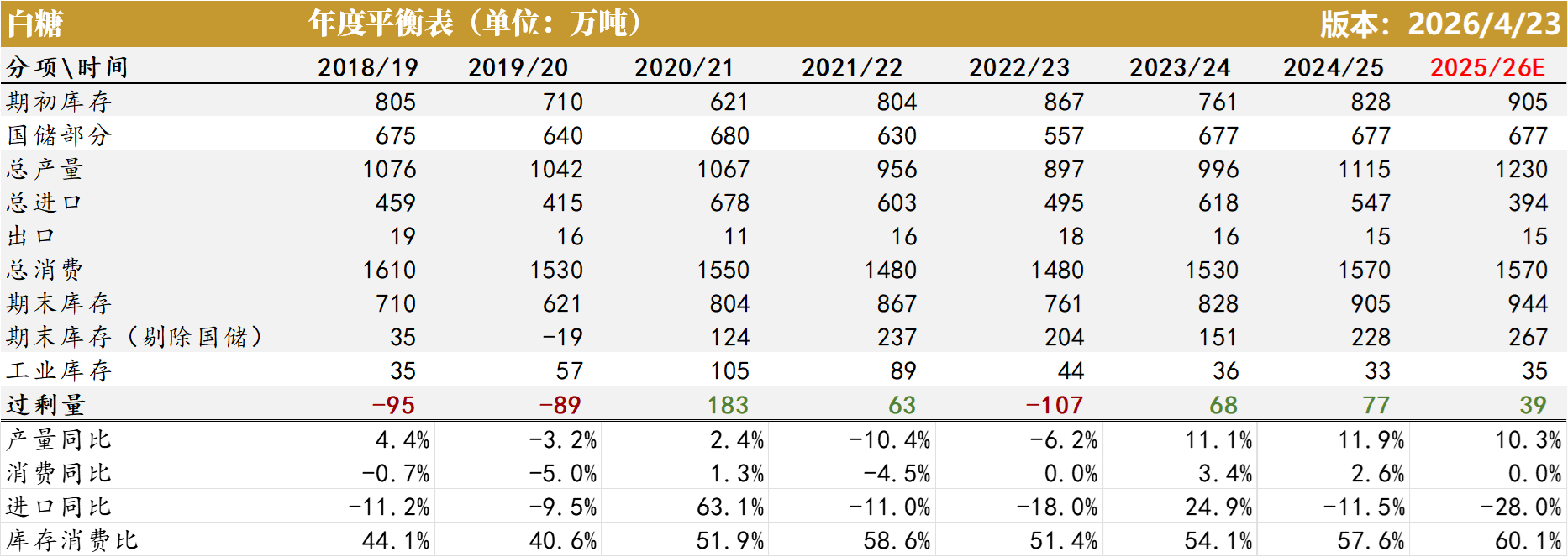 数据来源:Wind 大地期货研究院 年度平衡表