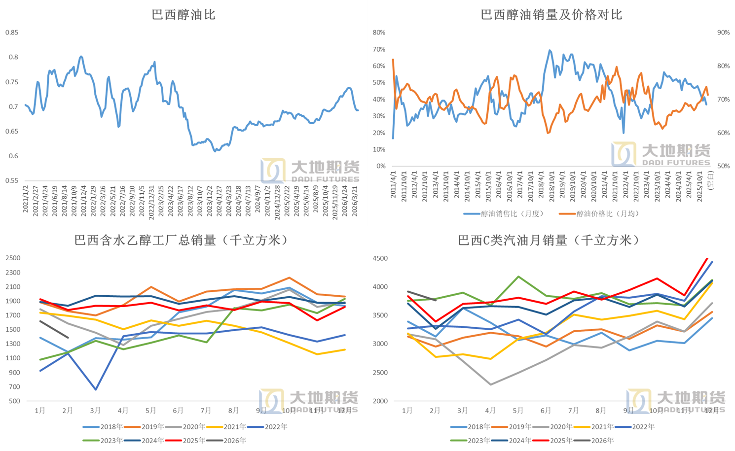 数据来源:Anp Unica Cepea 大地期货研究院 巴西乙醇数据
