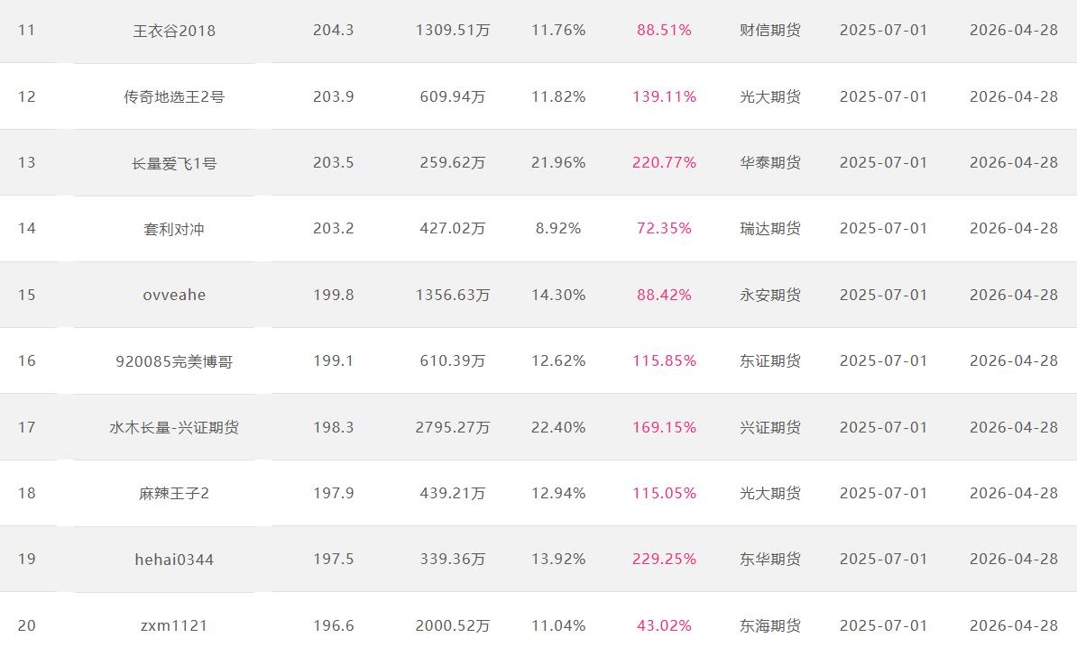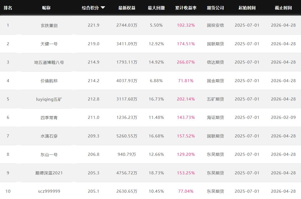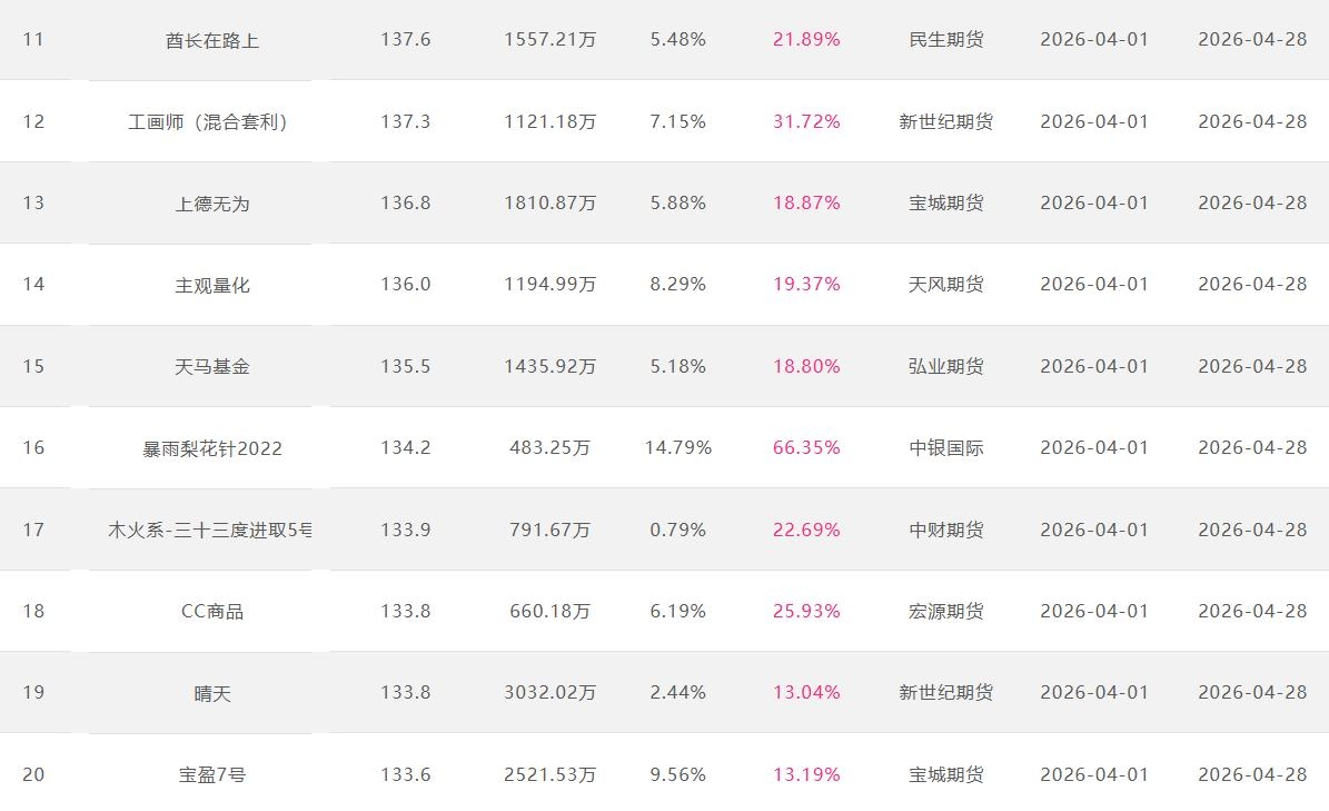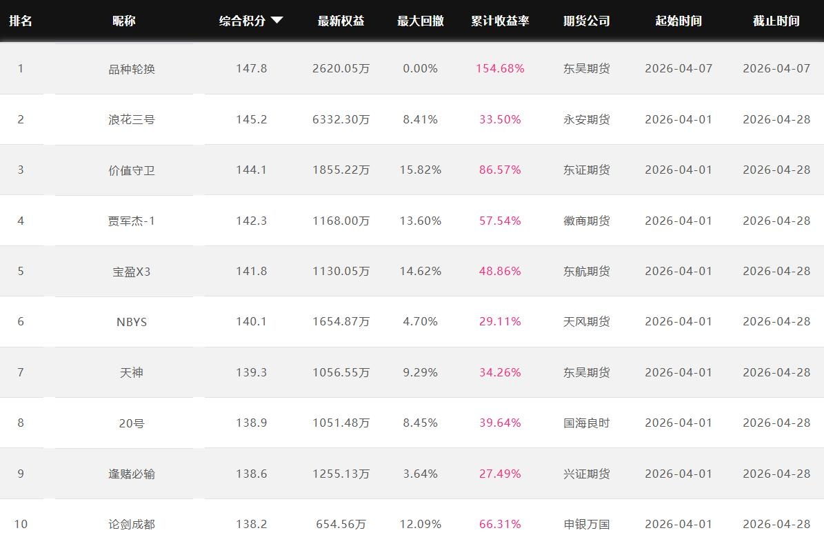 2026年4月【月度排名】(2026年4月1日-4月30日)