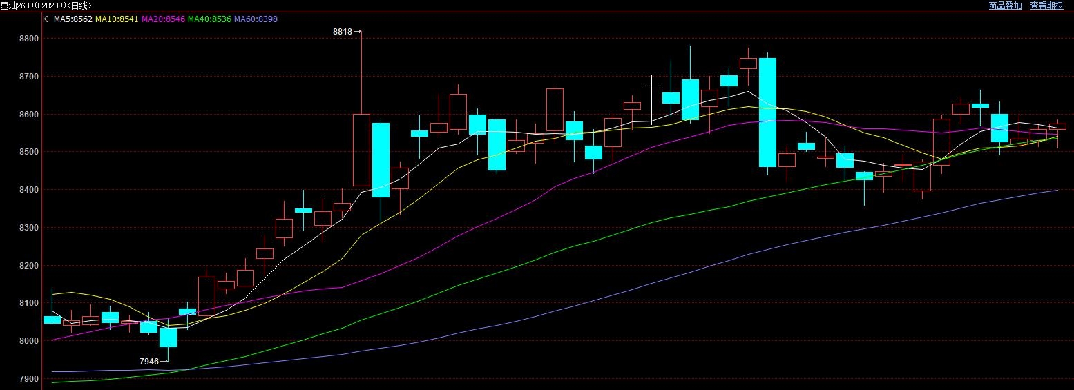 豆油:2026年4月29日,达到启动点的开仓条件,所以在14:56开多一手豆油2609合约,开仓价为8579。